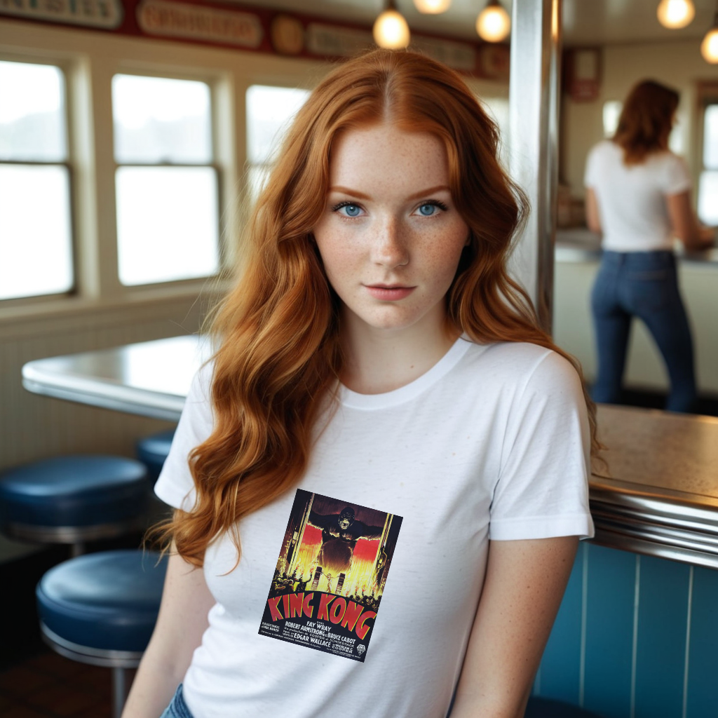 Relive the awe and terror of the 1933 cinematic masterpiece King Kong with this stunning movie poster t-shirt. Featuring the iconic Fay Wray and the legendary beast that defined a genre, this tee is a tribute to the groundbreaking film that still captivates audiences today. A must-have for classic movie aficionados and lovers of Hollywood’s golden age, this shirt roars with nostalgia and style!