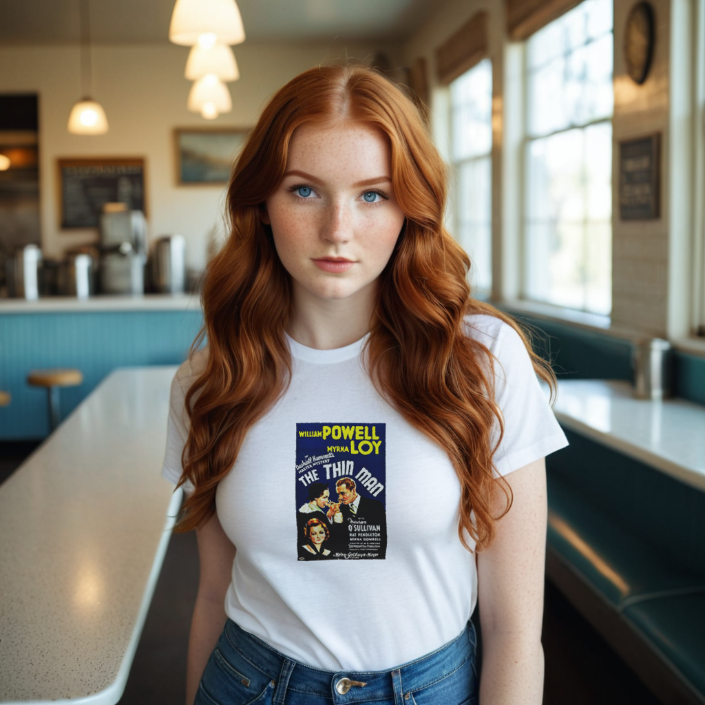 Step into the world of 1934’s glamour, mystery, and sharp wit with this The Thin Man T-shirt featuring William Powell and Myrna Loy. Celebrate the beloved classic that introduced the dashing Nick and Nora Charles—Hollywood’s ultimate detective duo. This vintage movie poster design exudes Art Deco charm and is perfect for fans of stylish mysteries, sparkling humor, and iconic old Hollywood. Slip into this tee and let the intrigue begin! 🥂🕵️♂️✨