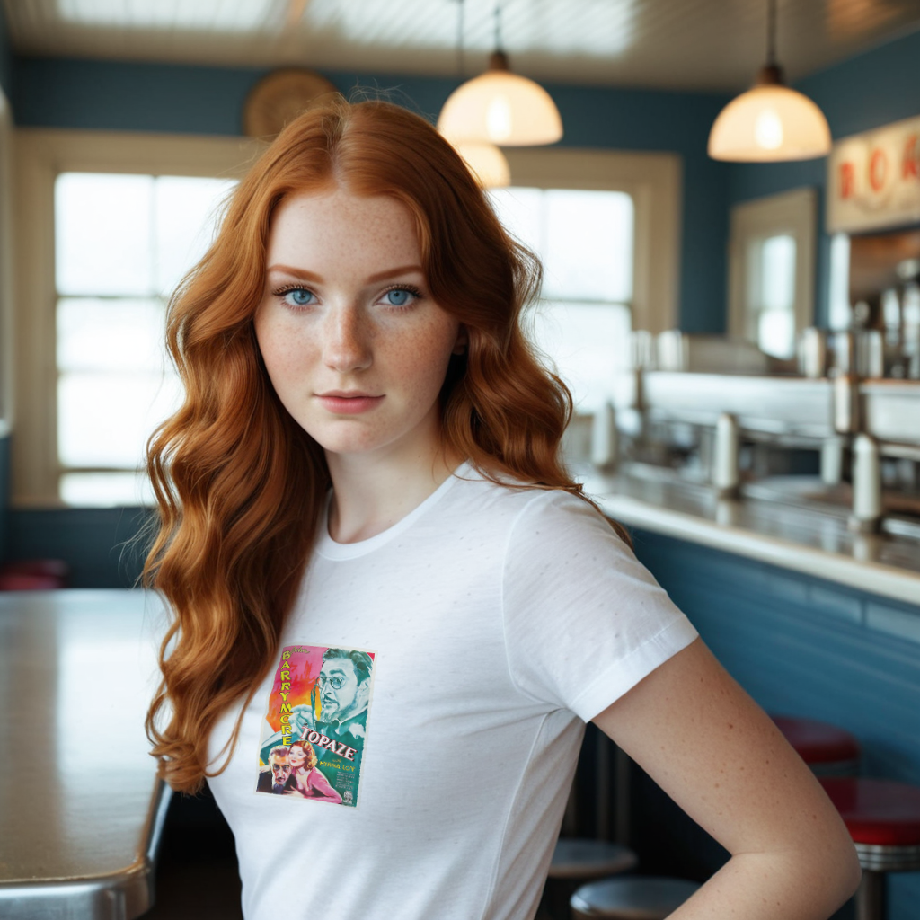 Celebrate the sharp wit and timeless humor of Topaze (1933) with this vintage movie poster T-shirt! Starring the incomparable John Barrymore, this satirical gem follows a mild-mannered professor as he navigates the slippery world of deception and power. Perfect for classic film enthusiasts and lovers of smart, socially aware comedies, this tee brings a touch of Golden Age cinema to your wardrobe. Wear it and let your love for vintage Hollywood shine! 🎭✨